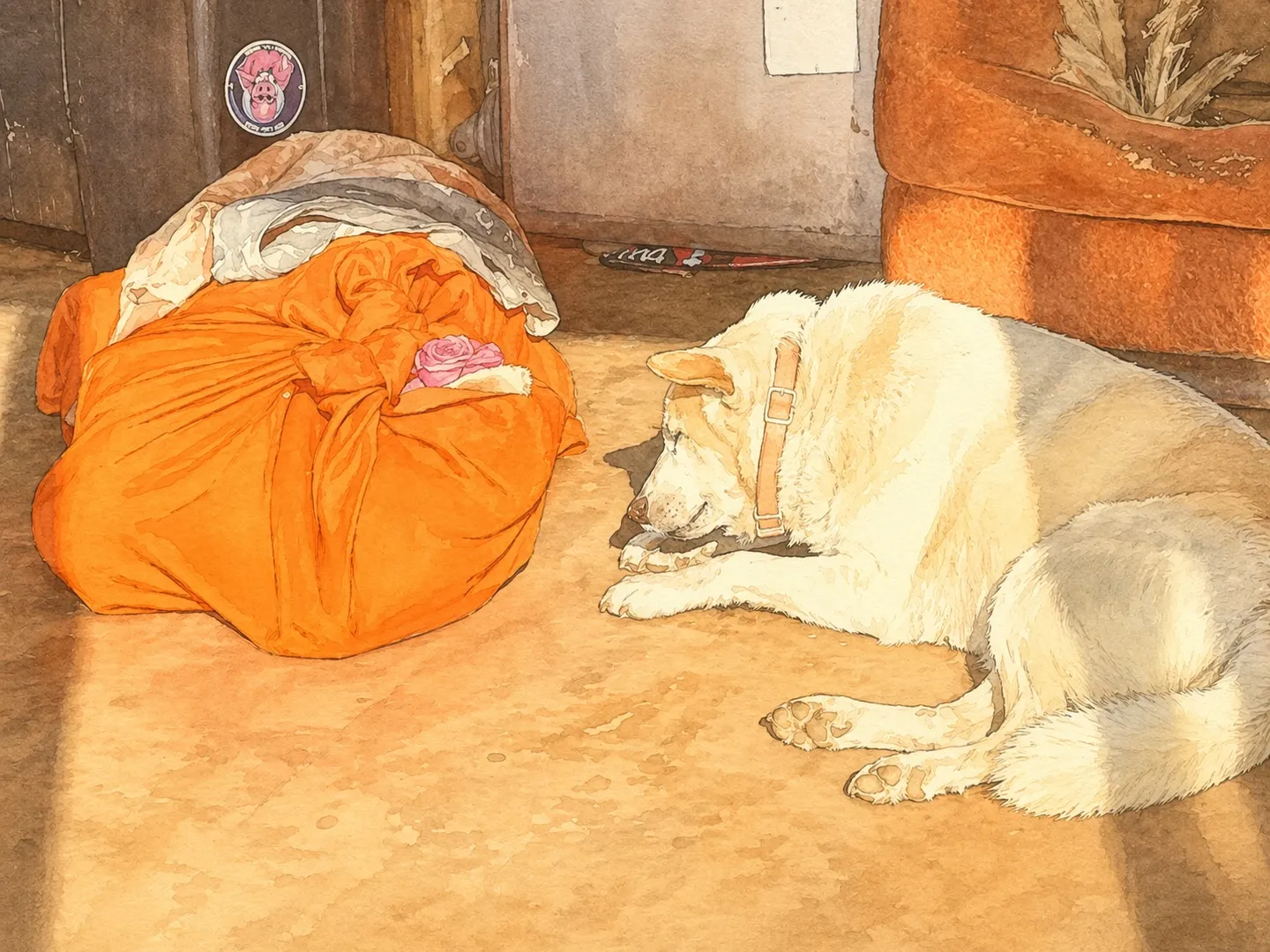 オレンジの毛布に包まれた亡骸に、癒やしてもらっていた子が気づいてずっと寄り添っていたそうです。